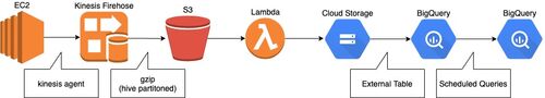 3行まとめ 背景 データの流れ そのままコピーするだけのLambda 外部テーブルを使おう ゆるふわをゆるふわのまま扱う JSON Linesを1カラムのレコードとして取り込む 定期的に外部テーブルにクエリして結果を保存する まとめ 3行まとめ BigQueryはいいぞ 外部…