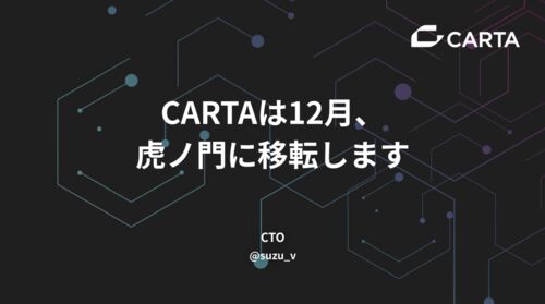 CTOのsuzukenです。今日はオフィス移転のお知らせです。 来月、CARTAは虎ノ門に移転します。新オフィスは虎ノ門ヒルズ ステーションタワーです。 youtu.be 虎ノ門ヒルズ ステーションタワー www.mori.co.jp 今年2月の移転に関するプレスリリース cartaholdin…