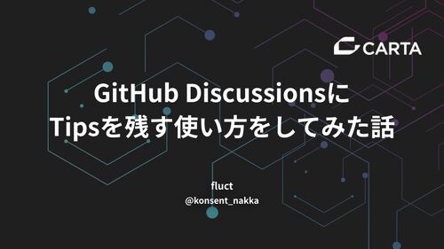 CARTA fluct エンジニア の なっかー @konsent_nakka です。 私のチームでは2024年7月ごろからGitHub Discussionsを運用しています。 運用の結果、感触が悪くなかったので共有がてら記事にしました。 GitHub Discussionsとは プロジェクトに関するコミュニテ…