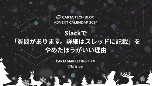 Slackで「質問があります。詳細はスレッドに記載」をやめたほうがいい理由 この記事はCARTA TECH BLOGアドベントカレンダー12/2の記事です。 こんにちは。CARTA MARKETING FIRM でエンジニアをしている 前田@brtriver です。アドベントカレンダーということ…