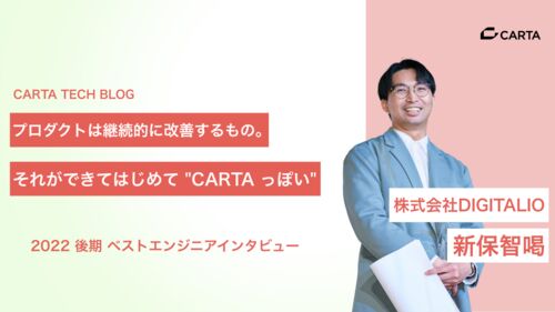 技術広報 ShuzoN__ (以下、しゅーぞー)です。 今回は ベストエンジニア表彰を受けた 株式会社 DIGITALIO トモカツさんに半年の取り組みをインタビューしました。 プロダクトは継続的に改善するもの。それができてはじめて "CARTA っぽい" そんな言葉も飛び出…