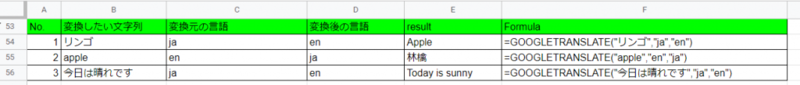 google翻訳と違いスプレッドシートに記録できるのも便利な点。