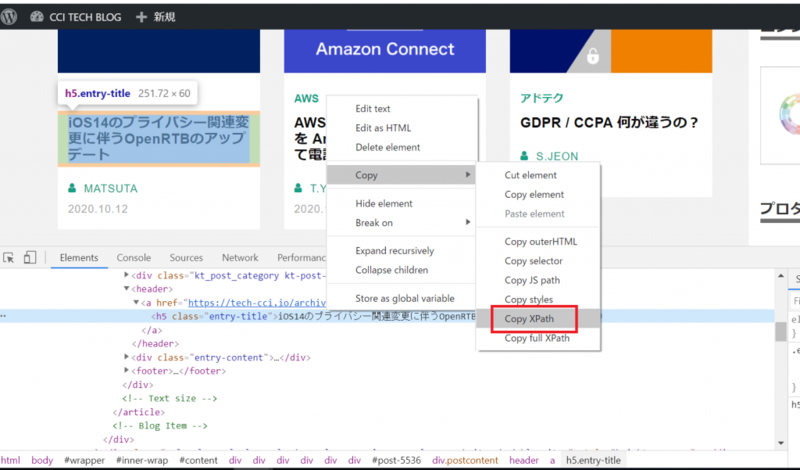 XPathはブラウザのデベロッパーツールを使って簡単に取得することができます。