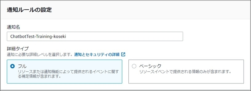 まずは通知名と詳細タイプを設定します。詳細タイプのデフォルトはフルになっています。フルとベーシックの違いは通知時の情報量の違いです。