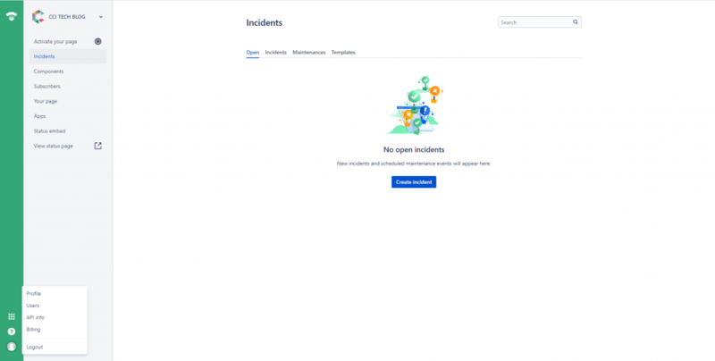 Incidents からインシデントの起票が可能。インシデントの内容やステータスをページ表示可能。またインシデント起票後にサブスクライバーにメールやSlack通知を送ることができる。 - サービス稼働状況お知らせページの構築に割り当てるリソースは最小限にしたい。