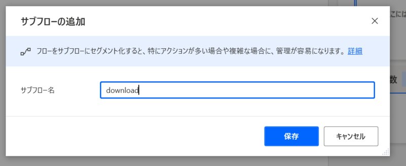 サブフローに名前を付けて保存する(現状サブフロー名にマルチバイト文字は利用不可)